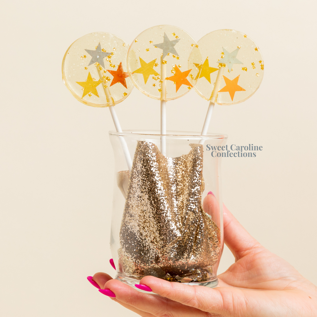 Metallic Star Lollipops, Champagne Flavor, Set of 4