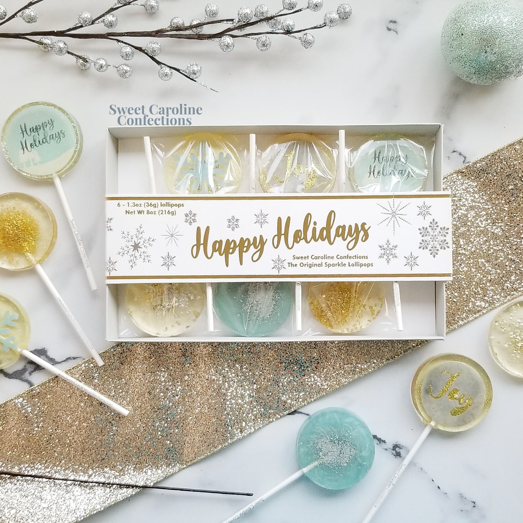 Our carefully curated lollipop collection designed for our gorgeous new holiday box! We have designed our luxurious new boxes from beginning to end, with a satin feel base, custom inserts and a gorgeous gold foil band. So dreamy!Β