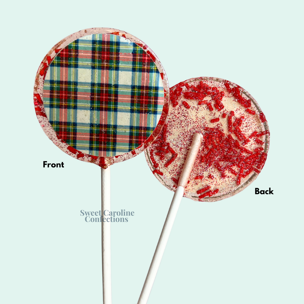 Green Red and Blue Plaid Lollipops, Set of 4