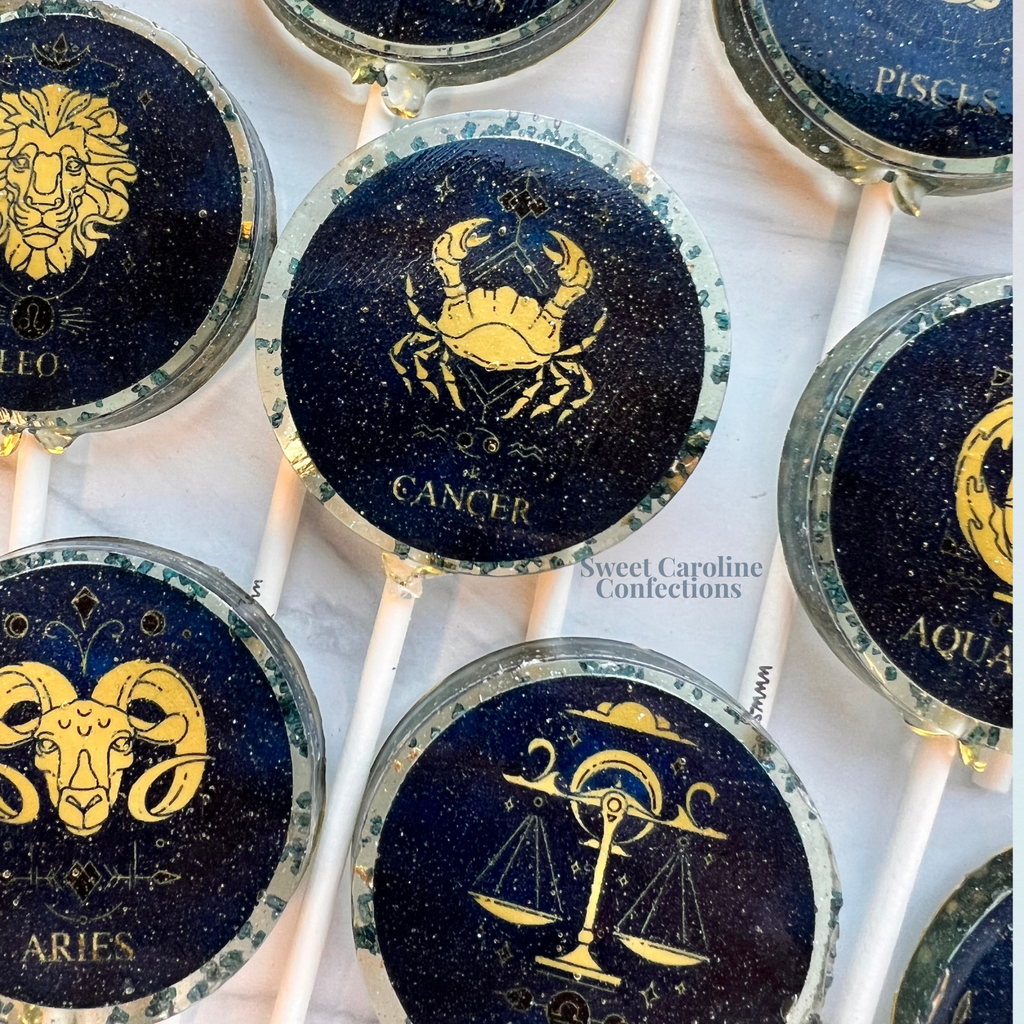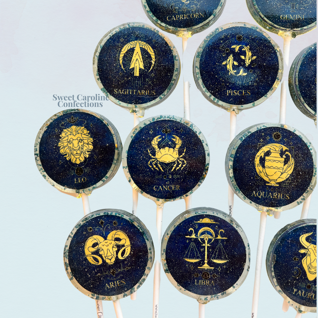 Navy and Gold Horoscope Lollipops, Raspberry Flavor, Set of 4