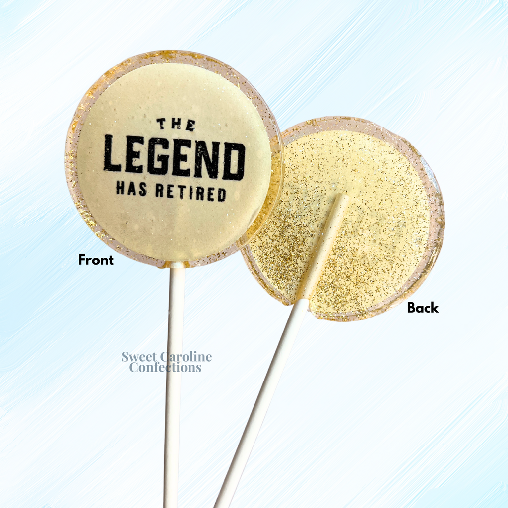 The Legend Has Retired (!) these fun and celebratory retirement lollipops are the perfect giveaway for your coworkers!
